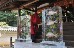「氷まつり」では冬に氷室に収められた氷が取り出され、融け残った氷が振舞われます。